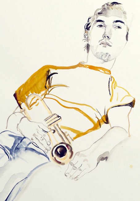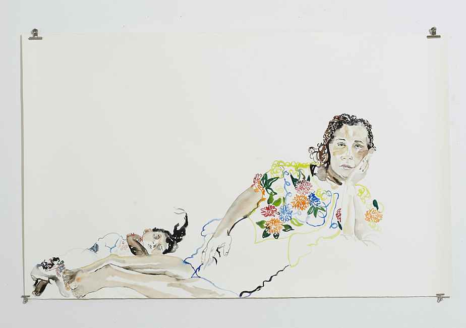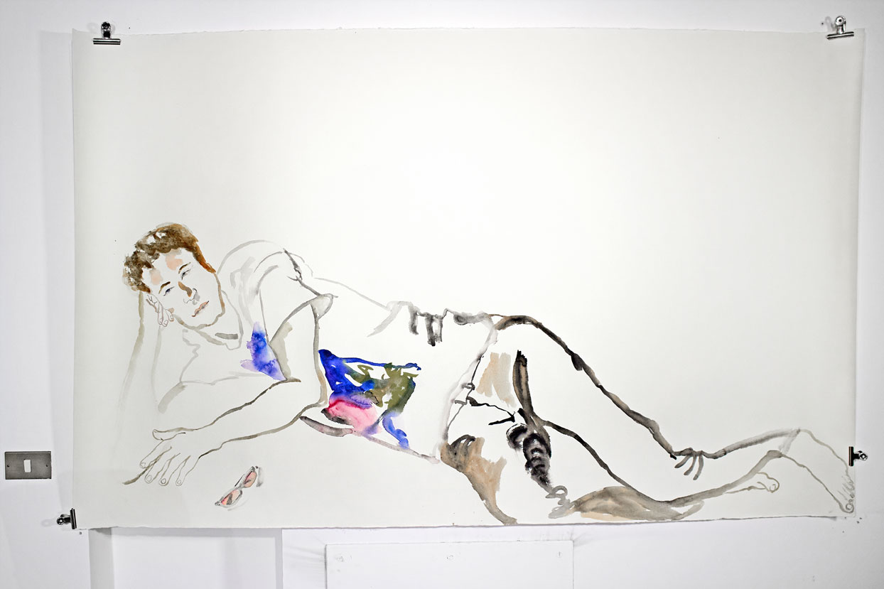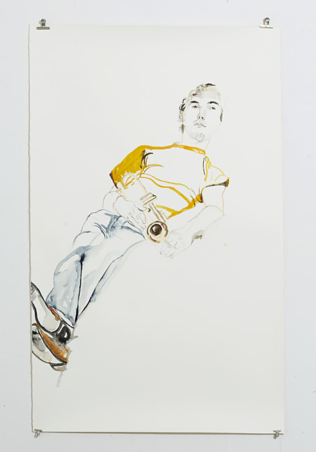 Around 2004 I started to paint life-sized portraits on paper. My models were usually friends and artists. Over time the circle expanded: People who live in Germany; of varying ages and nationalities. I do the paintings in the homes of my subjects without any preliminary sketches but paint directly with watercolors on paper. At a second date I make a biographical audio recording and edit the audio to a "whole" biography. Finally I make an audio collage of excerpts of the biographies. At an exhibition the voices can be heard and the portraits can be seen.