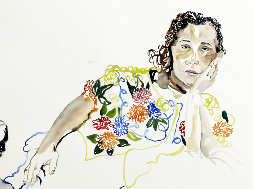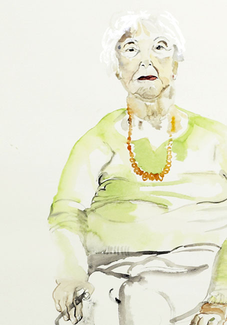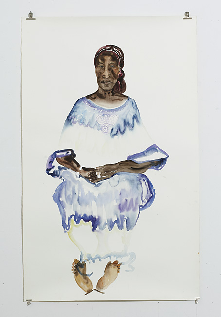 Um 2004 habe ich angefangen, Portraits in Lebensgröße auf Papier zu malen. Meist waren meine Modelle Freunde und Künstler. Im Laufe der Zeit erweiterte sich der Kreis: Es sind Menschen, die in Deutschland leben, sie sind unterschiedlichen Alters und auch unterschiedlicher nationaler Herkunft. Die Bilder entstehen in den Wohnräumen der Menschen. Ich mache keine Vorzeichnungen, sondern male mit Aquarellfarbe direkt auf Papier. In einem zweiten Treffen mache ich eine biografische Audioaufnahme und schneide das Gesprochene zu einer „ganzen“ Biografie. Ausschnitte der Biografien werden collagiert und so zu einer "Stimmen" Komposition. In einer Ausstellung kann man die Portraits sehen und die Stimmen hören.