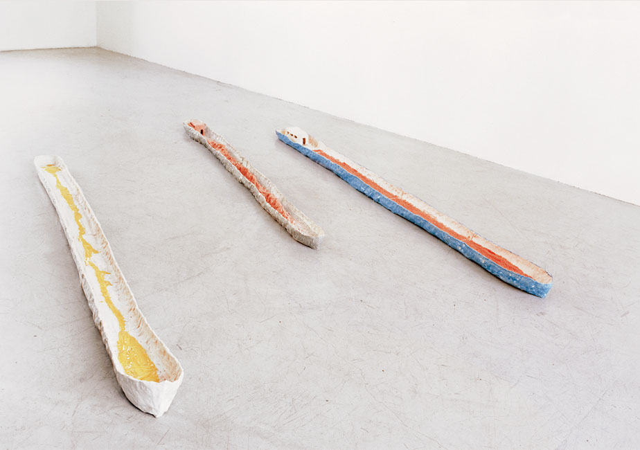Mensch und Menschlichkeit, das Leben in seiner ganzen Diversität, spielt im Werk der Düsseldorfer Künstlerin eine zentrale Rolle. Ihr Interesse an der Vielschichtigkeit, die uns ausmacht, spiegelt sich in der Vielseitigkeit ihrer Arbeit wider: In ihren Skulpturen, Installationen, Audioarbeiten, Texten, Zeichnungen, Aquarellen und Collagen erforscht sie das Alltägliche, das Individuelle und Unperfekte, Ähnlichkeiten und Unterschiede. Auch ihre gefäßnahen und hockerartigen Objekte, die Assoziationen zu Momenten des Zusammenseins und der Gastfreundschaft wecken und welche sie im hinteren Teil der Ausstellung auf dem Boden sowie auf feingliedrigen Sockeln zeigt, „erinnern an das Menschsein“, so Carol Pilars de Pilar und sind für sie wie Erinnerungsstücke. Um das Erinnern und Teilen, um persönliche Momente und den menschlichen Körper geht es auch in den Aquarellen, Fotos und Collagen aus der Installation „Passage“. Die Anekdoten aus ihrer Kindheit, Pubertät und Jugend, die Menschen aus verschiedensten Ländern mit ihr teilten (nachzulesen im Künstlerinnenbuch „Alltag / Everyday Life / Passage“), bilden mit den gezeichneten und gemalten Körperfragmenten portraithafte Momentaufnahmen und erzählen vom Entdecken des eigenen Körpers, Intimität und wechselhaften Beziehungen. In einer weiteren Zeichnungsreihe erkundet die Künstlerin die über das rein Kognitive hinausgehende Wahrnehmung, indem sie völlig frei und intuitiv bei geschlossenen Augen zu etwa Klassik, Popmusik, Jazz oder Chanson auf das Blatt zeichnete und sprühte.