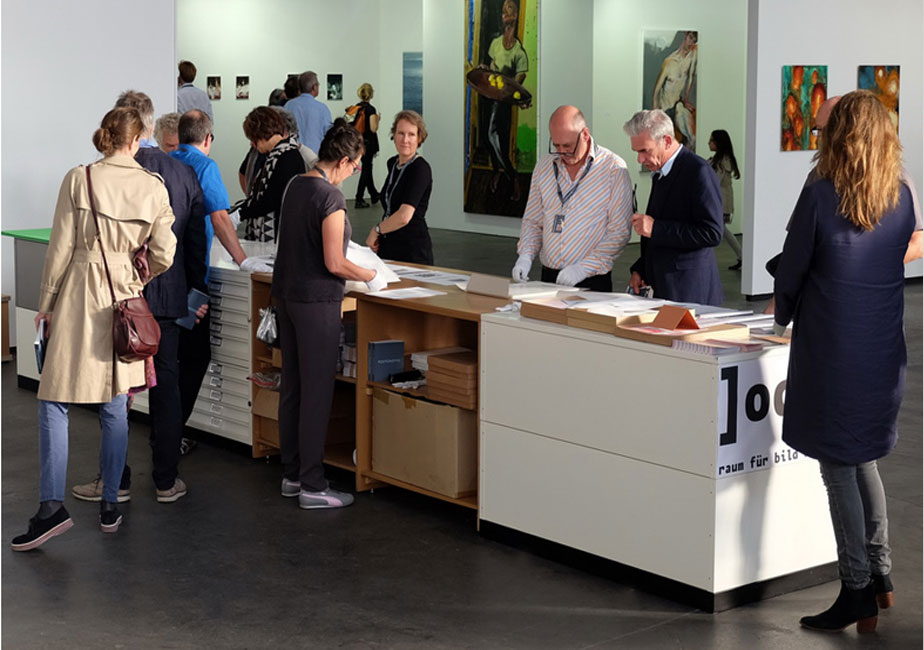 PAPERFILE ON TOUR, POSITIONS Berlin Art Fair 2019 Das „Modell Oqbo“, das dem Graphikschrank, in dem Zeichnungen zahlreicher Kuenstler*innen auf mehreren Ebenen in Mappen gelagert sind. Dabei eroeffnen sich – ob in der Brunnenstraße oder auf Reisen,– mit jeder Schublade neue Per- spektiven auf die gegenwaertige Zeichenkunst nicht nur in Berlin, die auf diese Art und Weise eine offene Plattform bekommt, wie sie der Kunstbetrieb ansonsten nicht bieten kann.